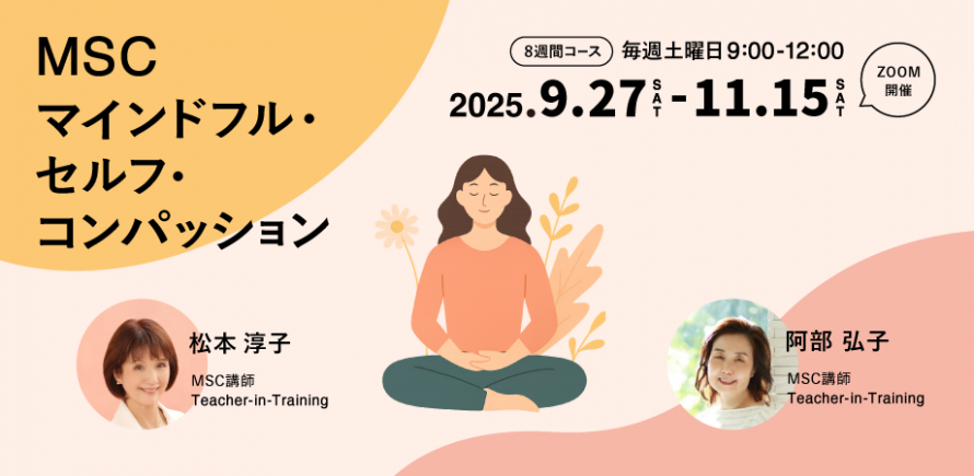 2025年9/27(土)~11/15(土)に開講予定のMSC(マインドフル・セルフ・コンパッション)8週間コースの無料体験・説明会のご案内です。